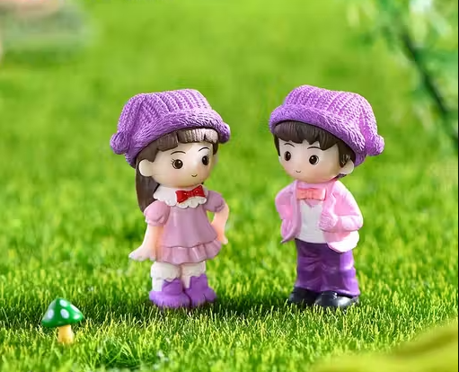 Introduce a touch of whimsy and romance to your decor with our Cute Purple Clown Hat Couple Romantic Showpiece Miniature Figurine. This delightful piece captures a charming moment between a boy and girl, both adorned in playful purple clown hats, symbolizing love and joy. Perfect for any wedding celebration or romantic occasion, this figurine stands out as a heartwarming testament to your love story. Use it as a centerpiece for your cake display, or add it to your home decor for a sprinkle of fun and affection.