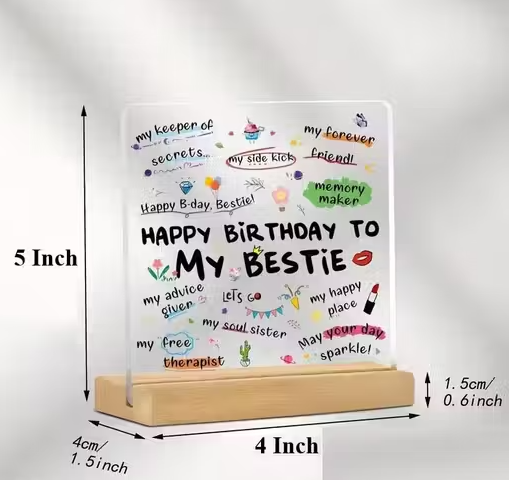 Celebrate the bond of friendship with our Best Friend Birthday Gift Acrylic Plaque, a truly unique and heartfelt present that captures the essence of your cherished moments together. This colorful, personalized wooden happy birthday frame is designed to be a delightful decor piece for any space, ideal for both him and her. Measuring 5x4 inches, it’s the perfect size to showcase a beloved photo alongside a thoughtful message, ensuring your friend's birthday is as special as they are. Crafted for durability and charm, this plaque not only decorates their room but also adds a personal touch that they will treasure forever.