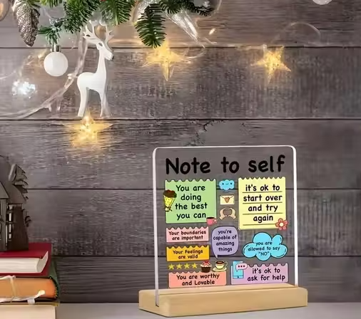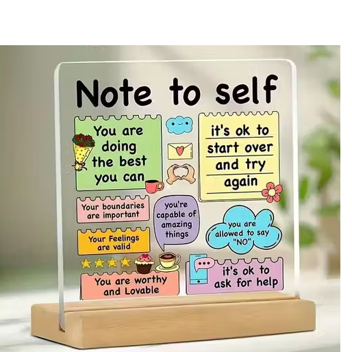 Transform your workspace or study area with our Acrylic Self-Love Reminder Desk Card, designed to uplift and inspire you every day. Measuring 5x4 inches, this sleek and stylish decor piece serves as a powerful reminder to embrace self-love and positivity. Crafted from durable acrylic, it not only adds a touch of elegance to your desk but also provides motivational quotes that encourage you to believe in yourself. Whether you’re at the office or studying at home, this card is a perfect companion for those challenging moments when you need an extra boost of confidence and affirmation.