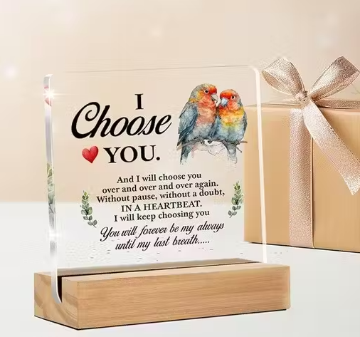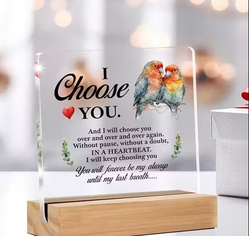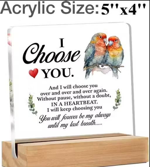 Elevate your romantic gestures with our exquisite Clear Acrylic Desk Sign, designed to celebrate love in a timeless way. This charming 5 x 4 inch desk accessory is perfect for reminding your significant other of your affection every single day. The sleek and modern design complements any home or office decor while allowing your heartfelt message to shine through. Ideal for anniversaries, Valentine's Day, or just because, this sign will make a thoughtful gift that your partner will cherish forever.