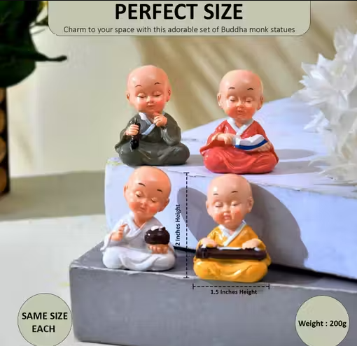 Transform your space into a sanctuary of serenity with the Little Baby Monk Idol Set of 4! These adorable, meditating monk statues embody tranquility and joy, making them perfect accents for your home décor, car dashboard, or office. Each intricately designed figure showcases a charming, peaceful smile that encourages mindfulness and positivity. Crafted in an array of vibrant colors, they add a cheerful touch wherever they are placed, making them not just decorative pieces, but delightful reminders to find joy in every moment. Ideal for gifting or as a treat for yourself, these Little Baby Monk Idols will surely uplift any environment!