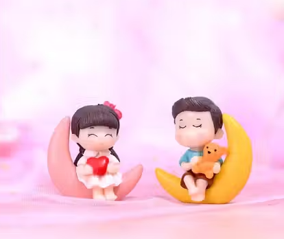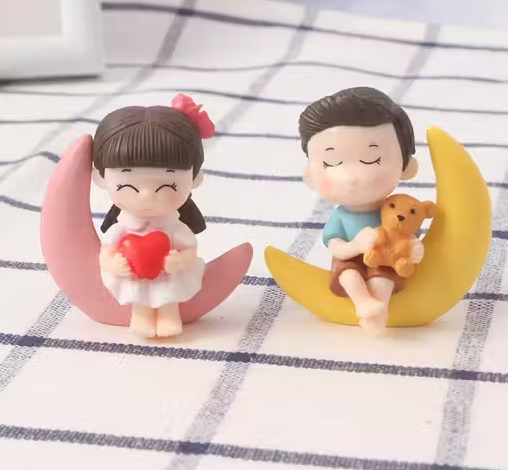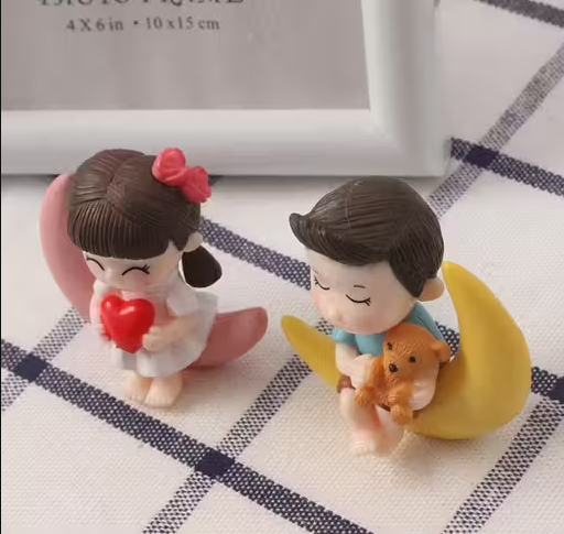Celebrate love and romance with our Cute Crescent Moon Couple Dolls Pair, a delightful miniature figurine that perfectly embodies the essence of togetherness. This charming showpiece features a lovely boy and girl nestled within a crescent moon, making it an ideal gift for weddings, anniversaries, or simply to add a touch of whimsy to your home decor. Crafted with intricate details, these adorable dolls radiate warmth and affection, making them an enchanting focal point whether on a cake, shelf, or as a romantic gift for a loved one.
