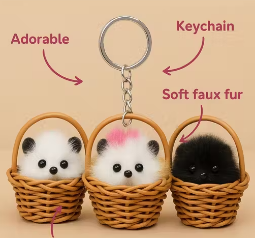 Introducing our Cute Fluffy Puppy Keychain for Women, an irresistible accessory that combines practicality with a touch of whimsy! This adorable keychain features a delightful fluffy puppy nestled in a charming basket design, making it the perfect companion for dog lovers and those who appreciate unique, playful items. Crafted from high-quality materials, this keychain not only holds your keys securely but also adds a dash of cuteness to your everyday style. Whether you clip it onto your purse, backpack, or use it as a bag charm, this delightful addition is sure to bring a smile to your face every time you reach for your keys.